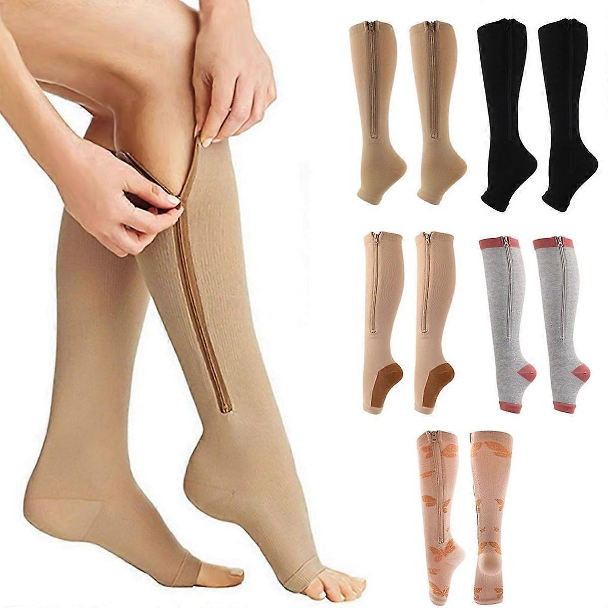 Travelwant Compression Socks Toe Open Leg Support Stocking Knee High Socks with Zipper