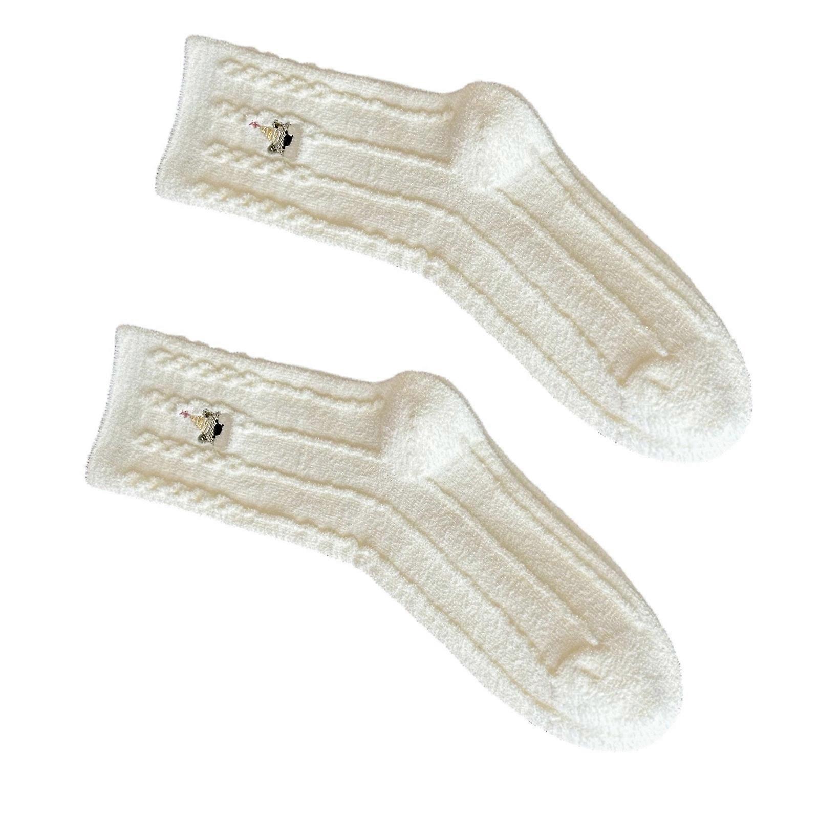 Comfortable Middle Calf Winter Socks Thermal Snow Yarn Embroidered Design Cold Weather Thick Knitted Fleece Lined White os