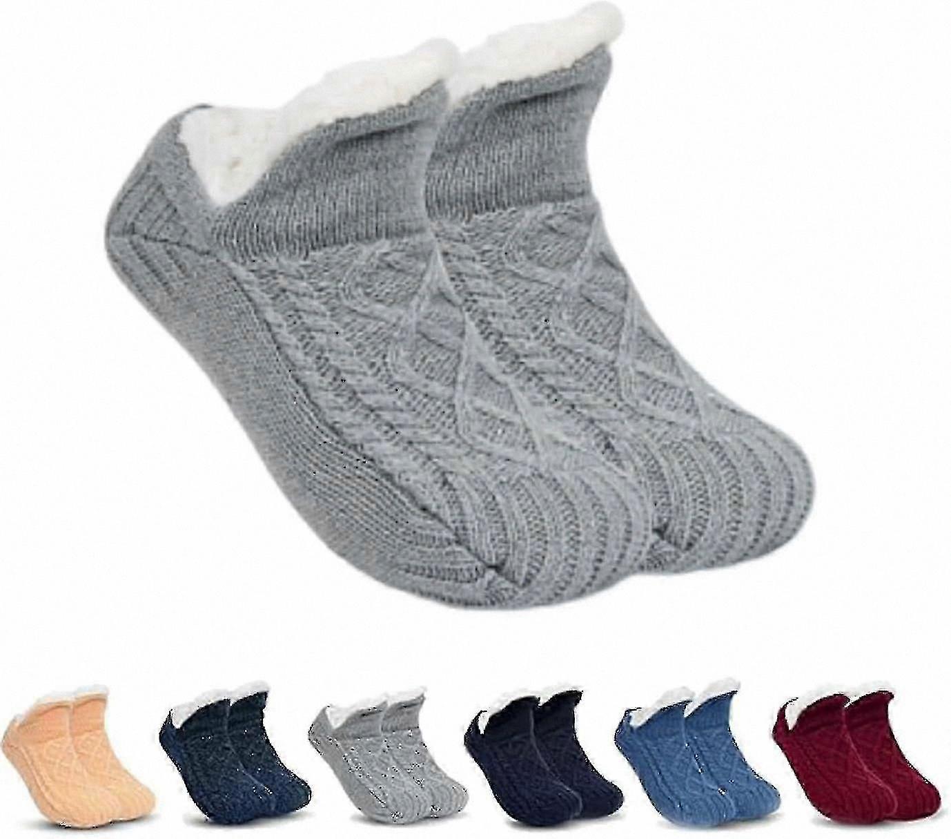 Cozy Fleece-Lined Thermal Socks with Non-Slip Sole, Fluffy V-Neck Slipper Socks for Indoor Comfort