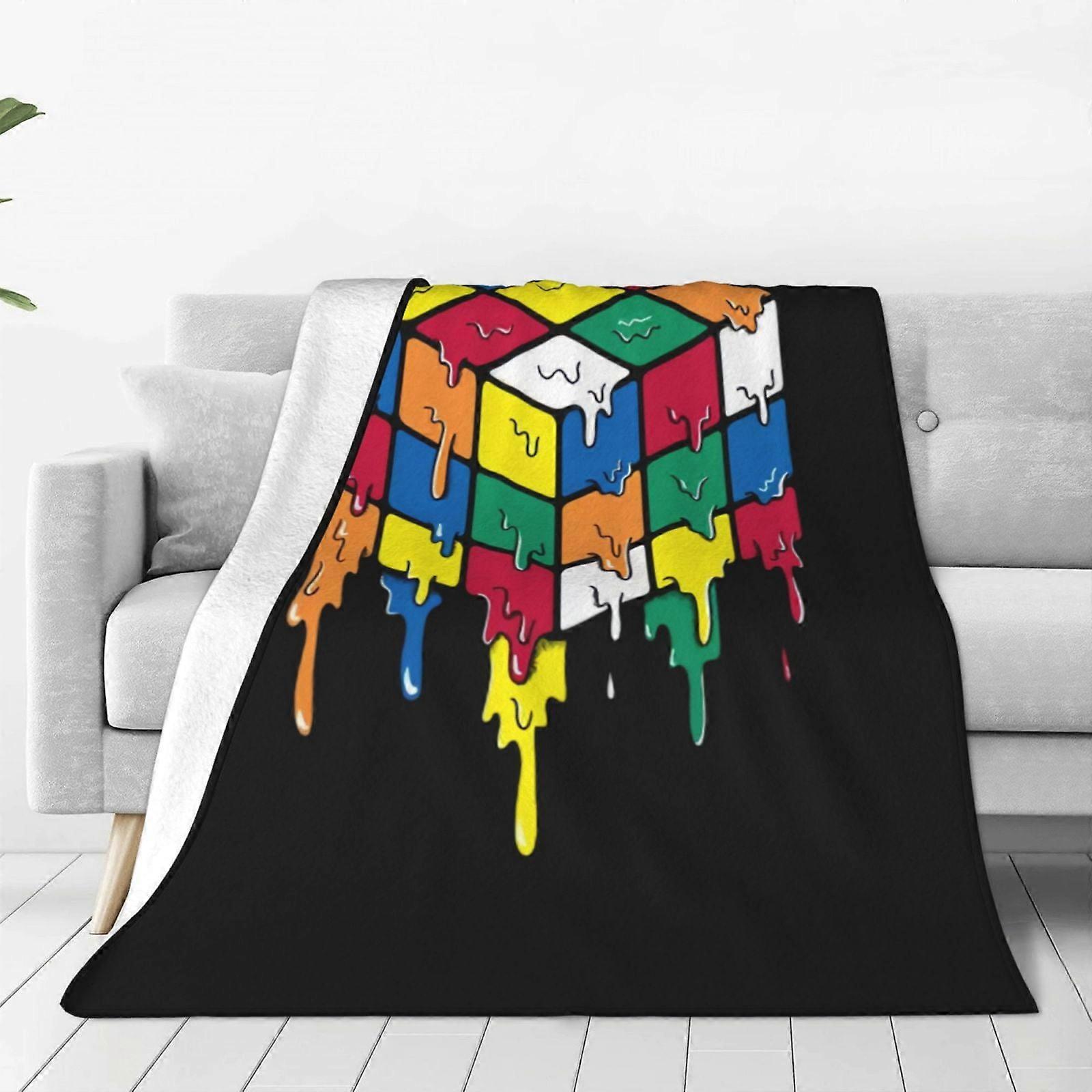 Melting Rubik's Cube Fleece Blanket - Super Soft, Lightweight & Cozy. Compatible with puzzle lovers. Perfect for couch, sofa, or bed.
