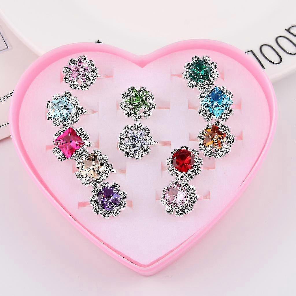 Little Girl Adjustable Rhinestone Gem Rings In Box Children Kids Jewelry Rings Set With Heart Shape Display-XT