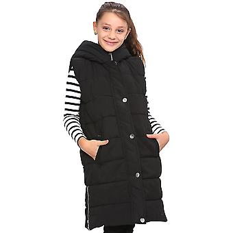 Meninas Down Vest Jaqueta com capuz preto (kui)