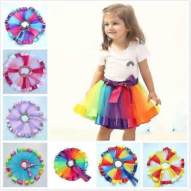 Girls Rainbow Ballet Skirt Mesh Skirt Mesh
