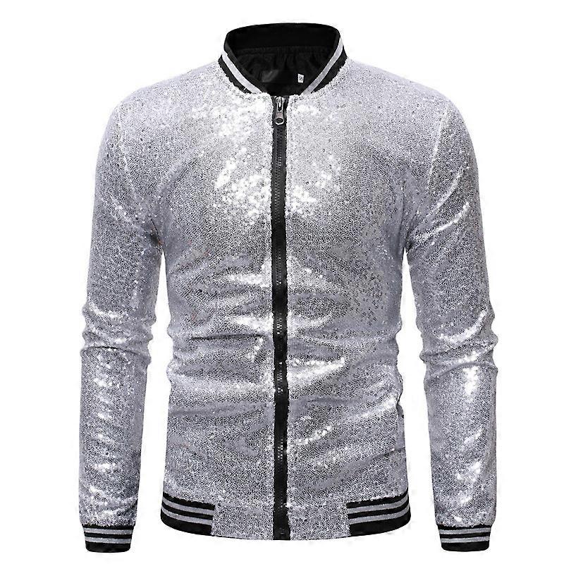 Mens Sequins Casual Zipper Party Bomber Jacket