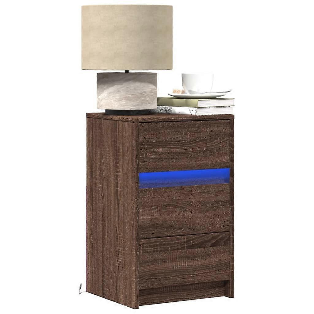 Nachttisch mit LED-Leuchten Braun Eichen-Optik Holzwerkstoff