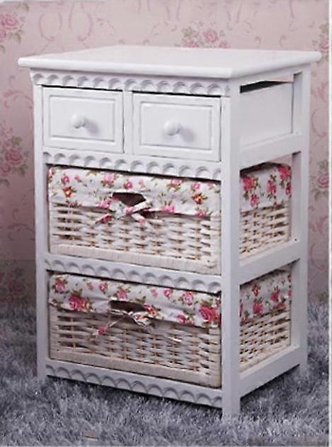 Country-Style Cottage 3 Layers Bedside Table Vintage with 2 baskets