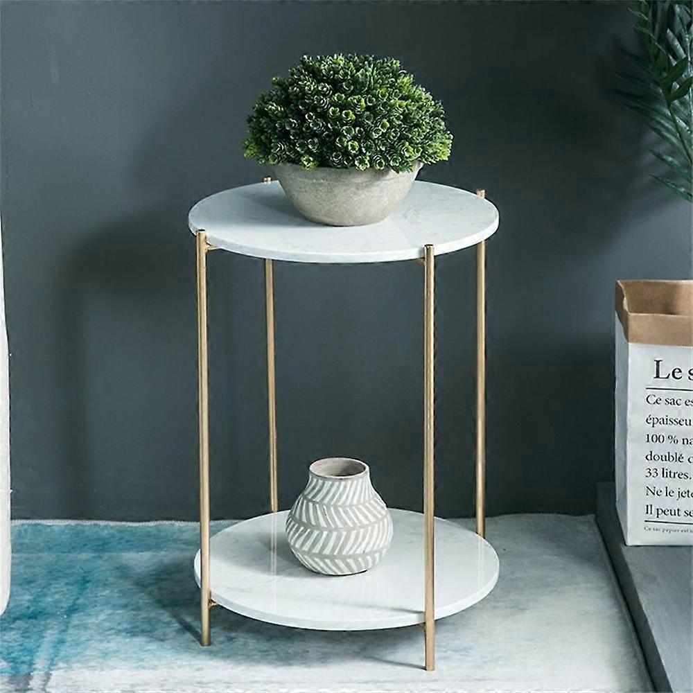 2 Tier Solid Marble Top Round Coffee Table Lounge Living Room Modern Gold Legs