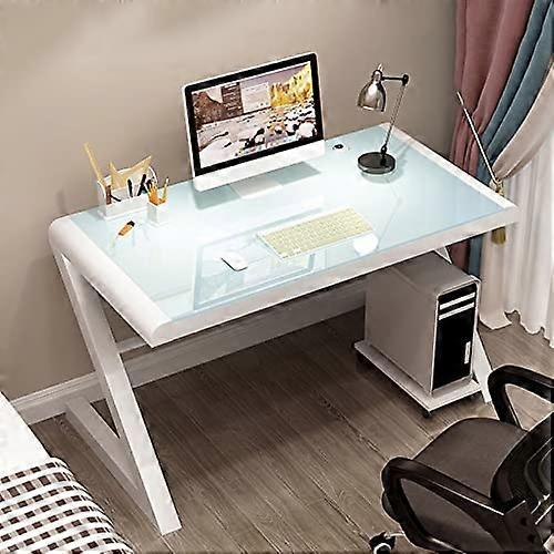 Tempered Glass Writing Desk Durable and easy to maintain surface: the desktop is tempered safety glass that is waterproof, antiscratch, and simple to clean, providing a clear and pleasing work area. The glass is supported by a metal frame for stable, longlasting use. Modern, versatile design: a clean, simple style that fits a wide range of home decor. Suitable as a portable computer desk, gaming table, laptop desk, or study writing desk. Userfriendly and safe: rounded corners reduce the risk of injury from sharp edges. A wire management hole on the surface helps keep cables organized and out of the way. The desk height is 29.5 inches, designed to pair easily with most chairs. Practical, multifunctional workspace: a wide desktop that accommodates a computer, monitor, printer, and other office supplies. Functions well as a computer desk, study desk, gaming desk, writing table, or general office desk. Ideal use scenarios Home office or study room: create a sturdy, organized workstation for daily computer tasks, document work, and writing. Gaming setup: ample surface for monitor(s), keyboard, mouse, and gaming accessories, with a stable platform to support extended sessions. Dorm room or shared workspace: a versatile surface that supports laptops, notes, printers, and other study or work essentials in compact spaces.