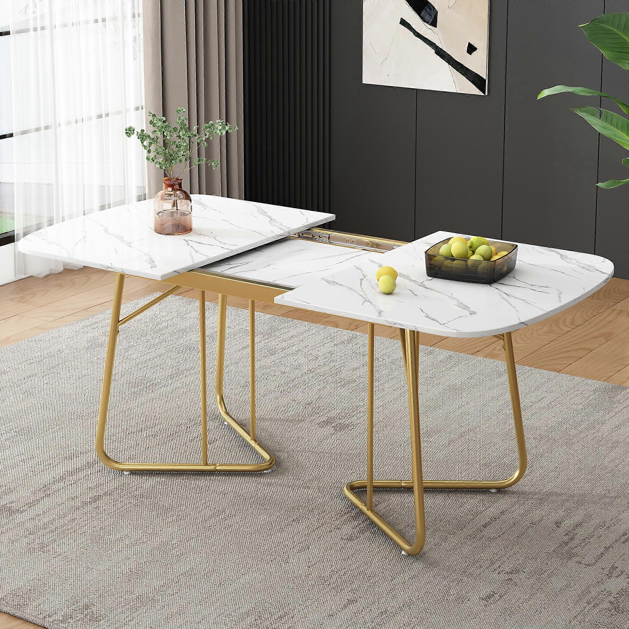 kashemano extendable dining table ,for 4-6 people, 140/180cm x 80cm, white tabletop, gold legs.