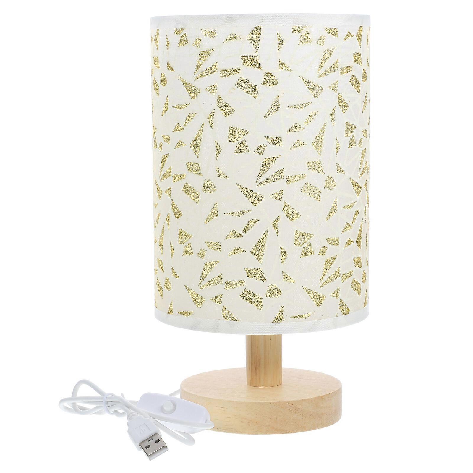 Tabletop Wood Base Lamp Cloth USB Desktop Lamp Bedroom Bedside Decorative Night Lamp
