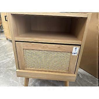 Mesa de cabeceira de vime com gaveta e prateleira aberta, estilo boho, para quarto ou dormitório, pés de madeira maciça, cor natural (1 unidade).
