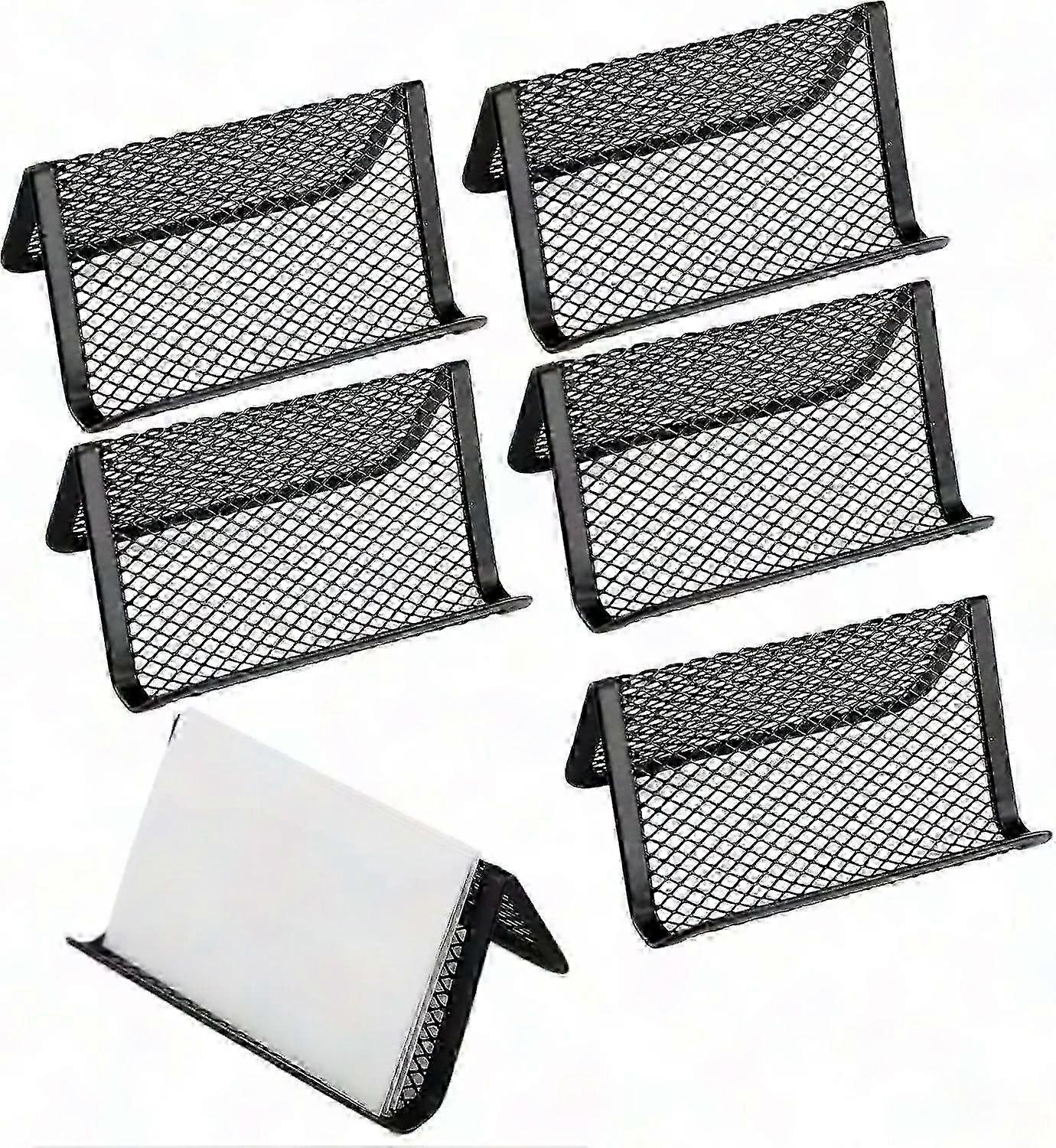 Metal Business Card Holder 6 Pack - Office Name Card Display Organizer, Black Mesh Design