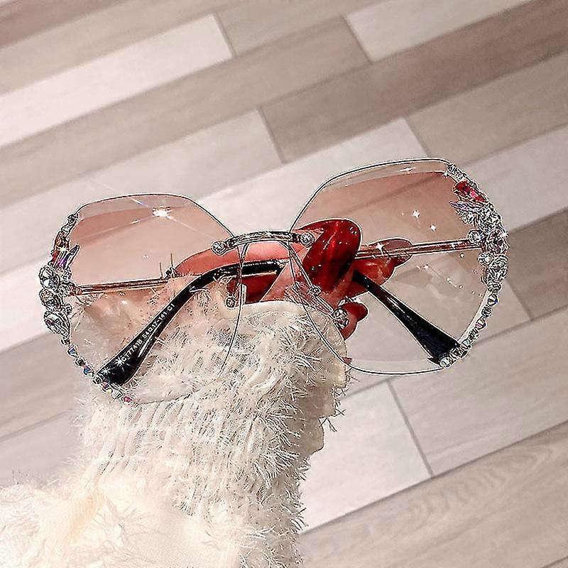 MIMIGO 2022 Women's Sunglasses Diamond Sunglasses Big Face Slim Uv Resistant Crystal Cut Rimless Sunglasses