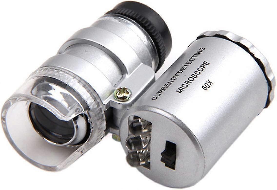 Mini 60x Microscope Magnifying With Led Light Pocket Jewelry Magnifier Jeweler Loupe