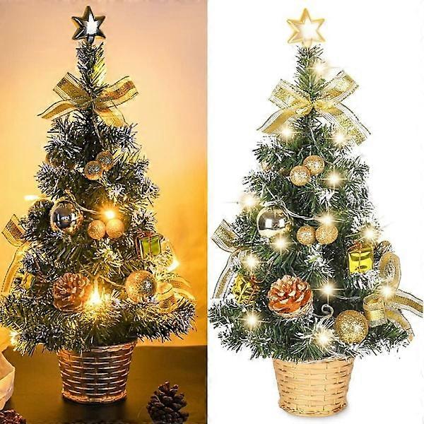 Mini Artificial Christmas Tree with LED Lights, Tabletop Decoration for Office, Bar, 40cm (Gold)