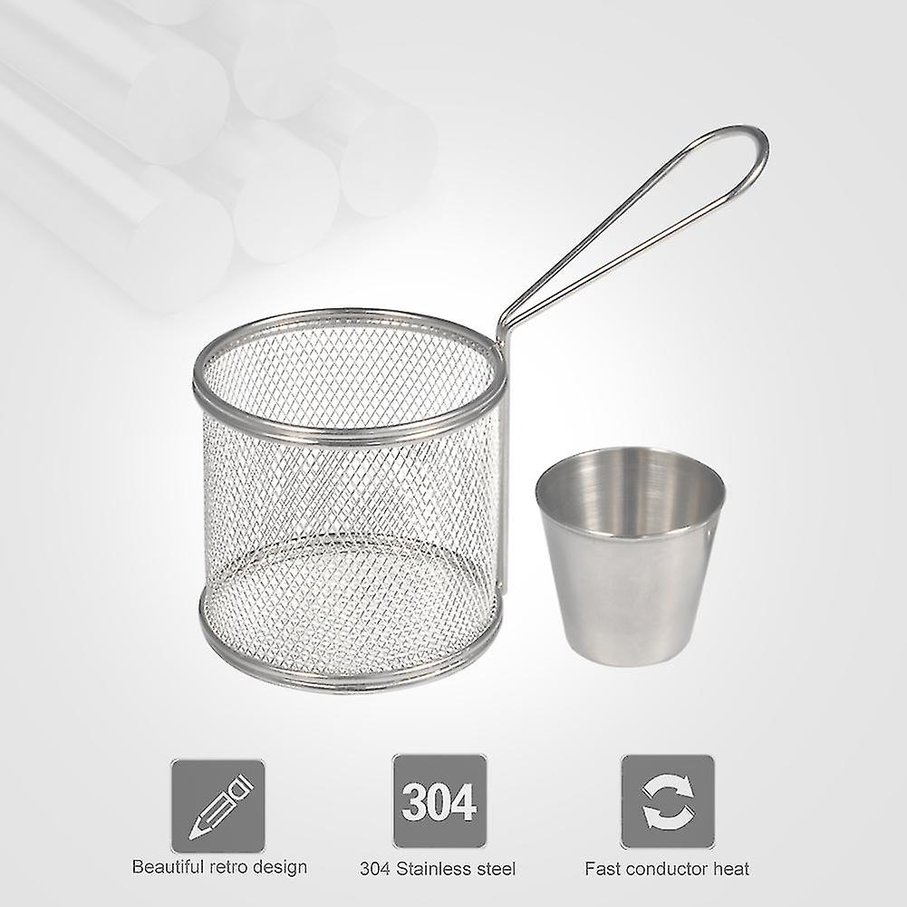 Mini Round Stainless Steel Fry Baskets 8x8.5cm with Sauce Cups