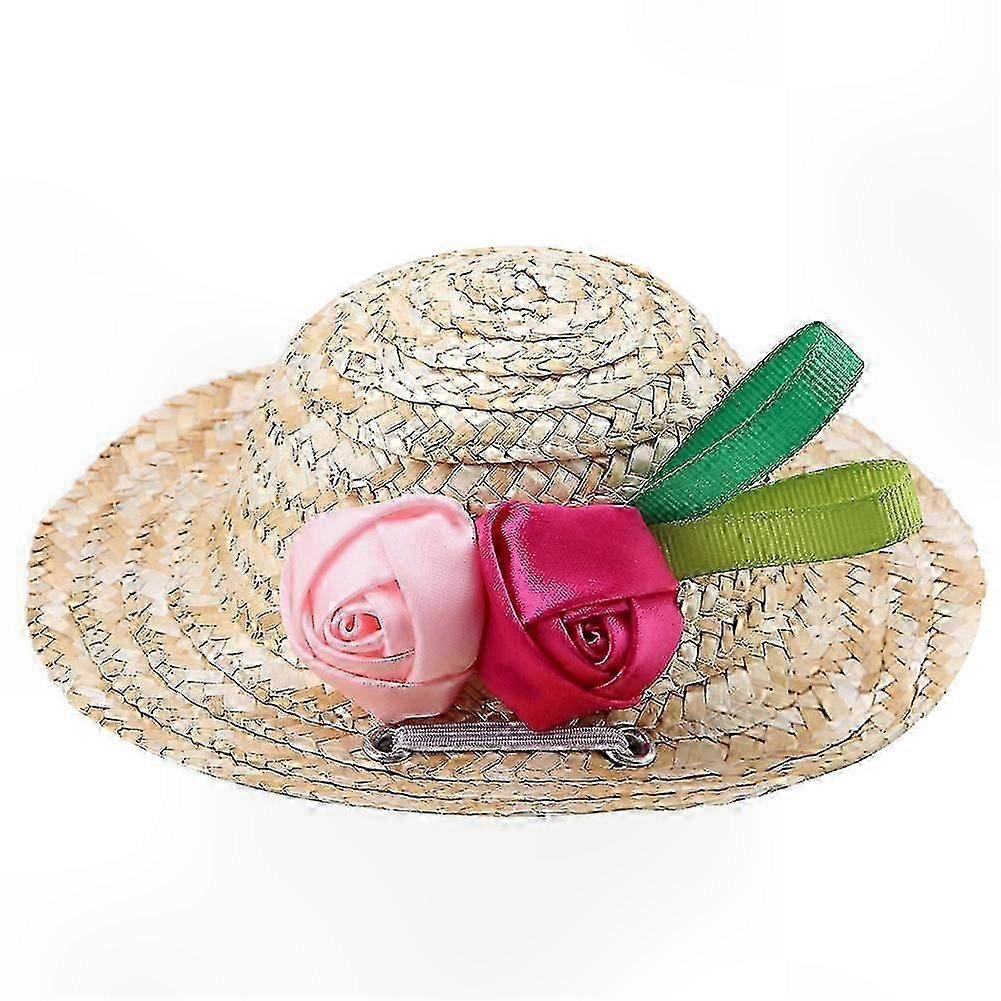 Mini Wide Brim Straw Sombrero Hat Suitable for Pets with Flower Decoration for Dogs and Cats