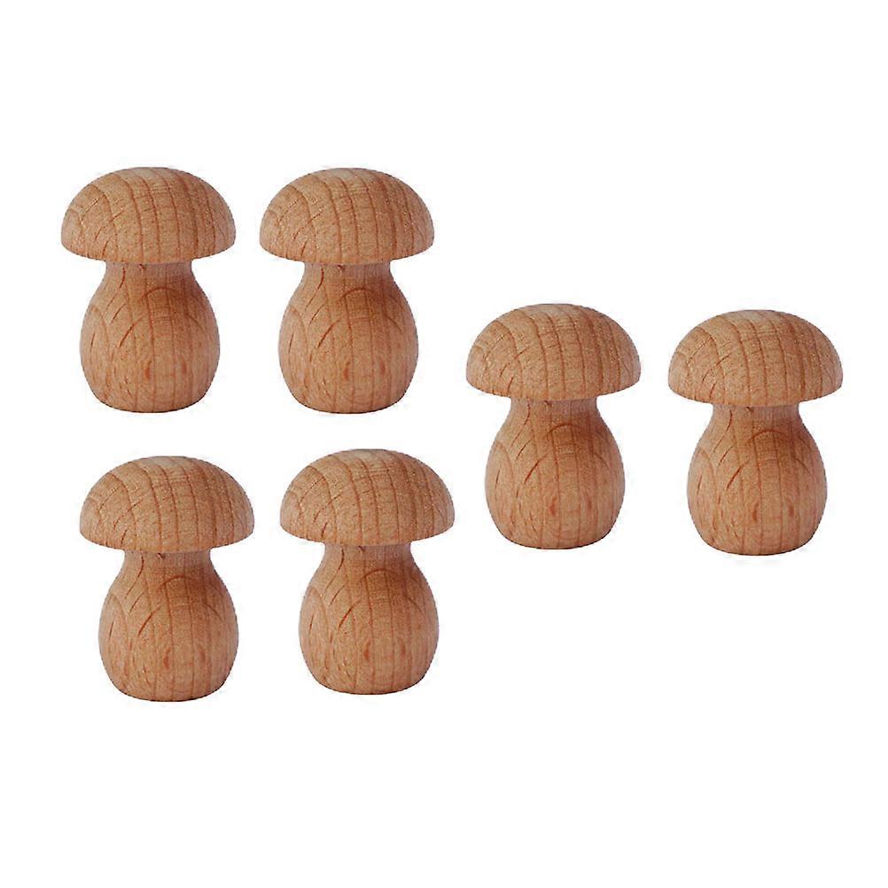 Wooden Mini Mushroom Decoration for Flowerpots with 6Pcs Unpainted