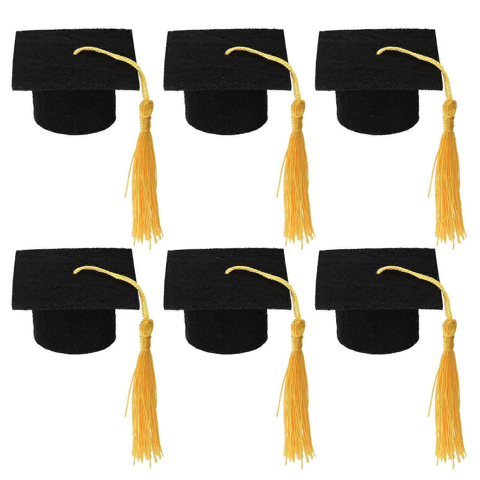 Mini Doctoral Cap Decoration for Graduation 6Pcs Yellow Tassel