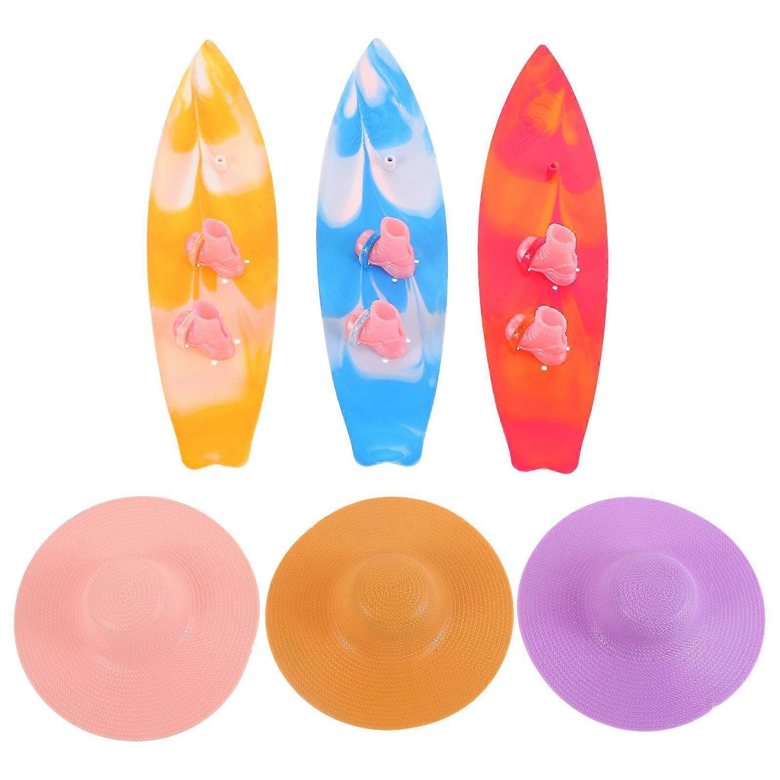 Mini Surfboard Model with Doll Boots and Hat Plastic for Kids 9Pcs