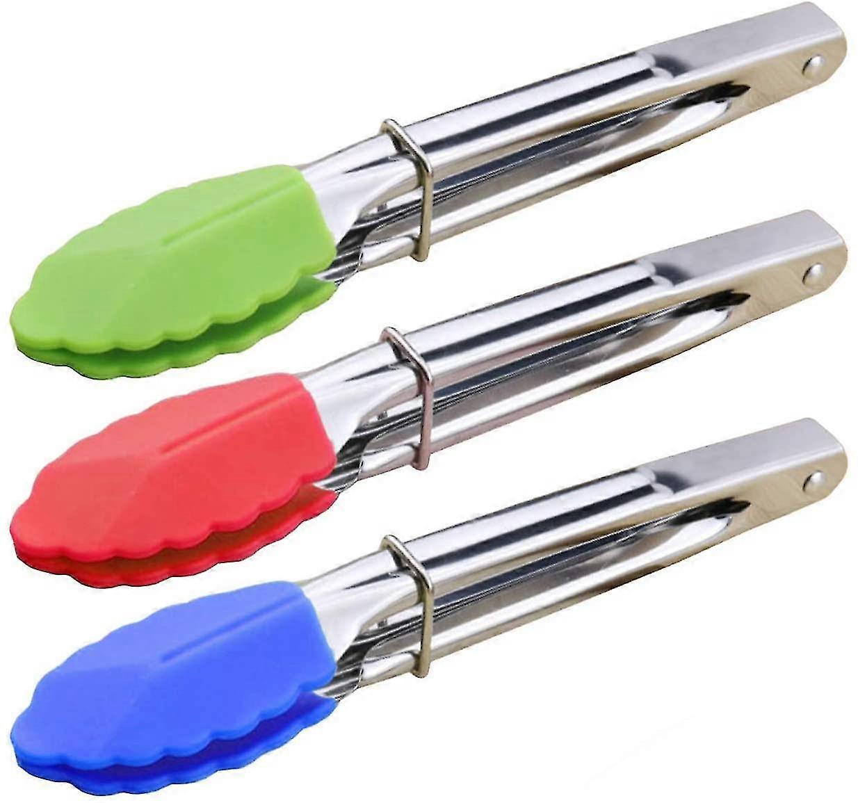 Mini Tongs With Silicone Tips 7-inch Serving Tongs - Set Of 3 - Perfect For Bbq
