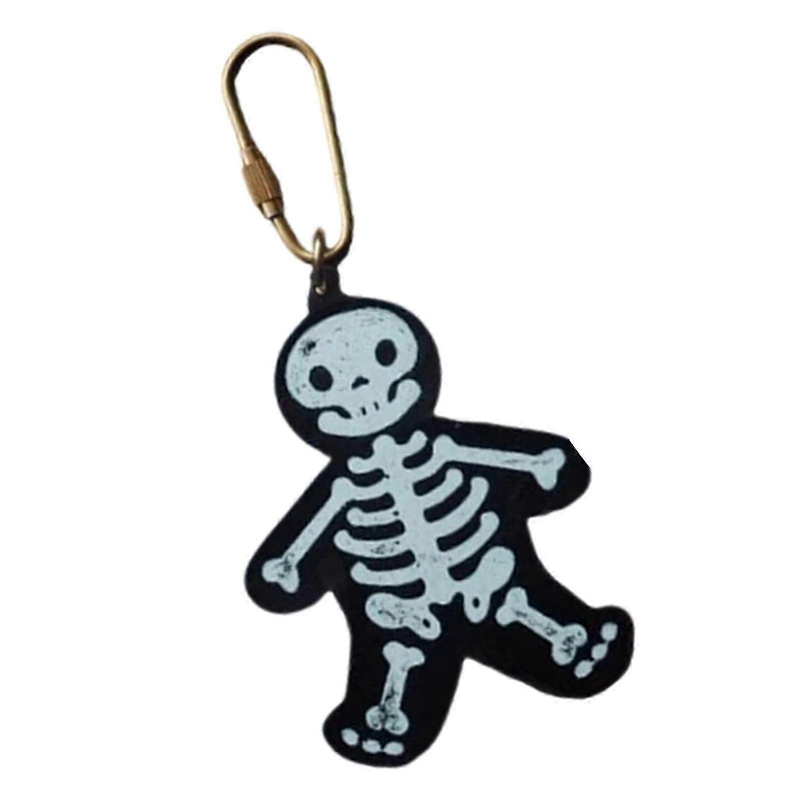 Miniature Skeleton Key Holder Soft PU Leather Keychain Halloween Charm Carabiner Keyring For Key Organization Light brown