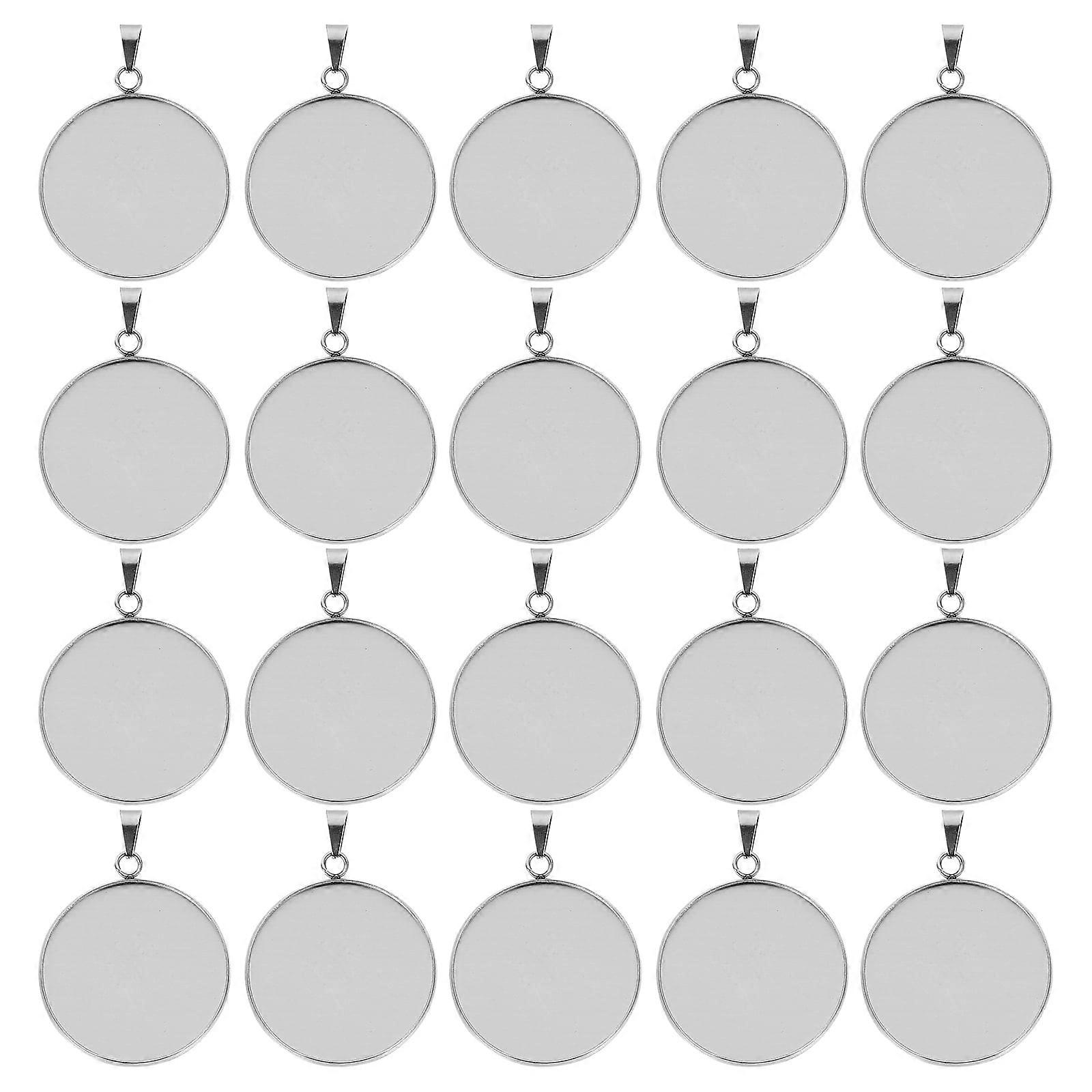 Mizh 20Pcs DIY Jewelry Pendant Accessories Stainless Steel Round Jewelry Trays Covers Kit for Neck Chain Necklace (Silver 25mm)