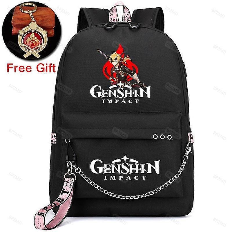 Genshin Impact Backpack For Student Schoolbag Women Girls Usb Charge Game Canvas Backpack With Luminous Keychain Drop Shipping