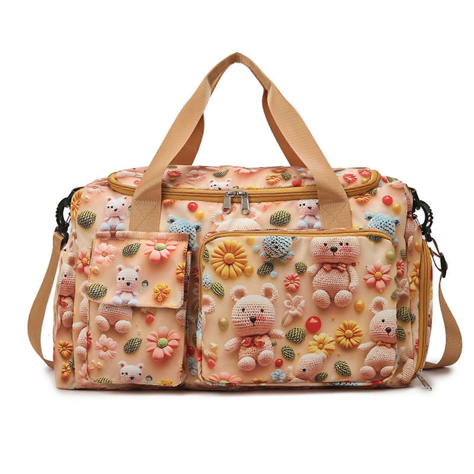 Cartoon Print Water Resistant Travel Duffle Bag For Gym Sports Swimming With Multiple Compartments And Adjustable Shoulder Strap Yellow