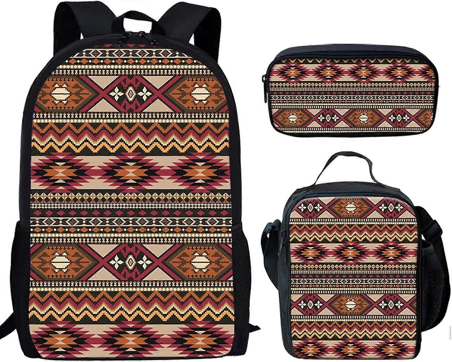 African Aztec Geometric Print Kids School Backpack with Insulated Lunchbox Pencil Bag 3Pcs Backpack Combo Kit