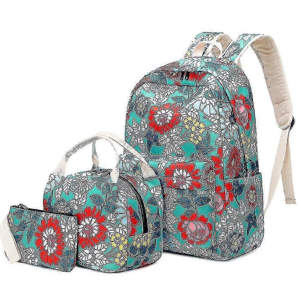 Three Piece Nylon Printed Floral Backpack