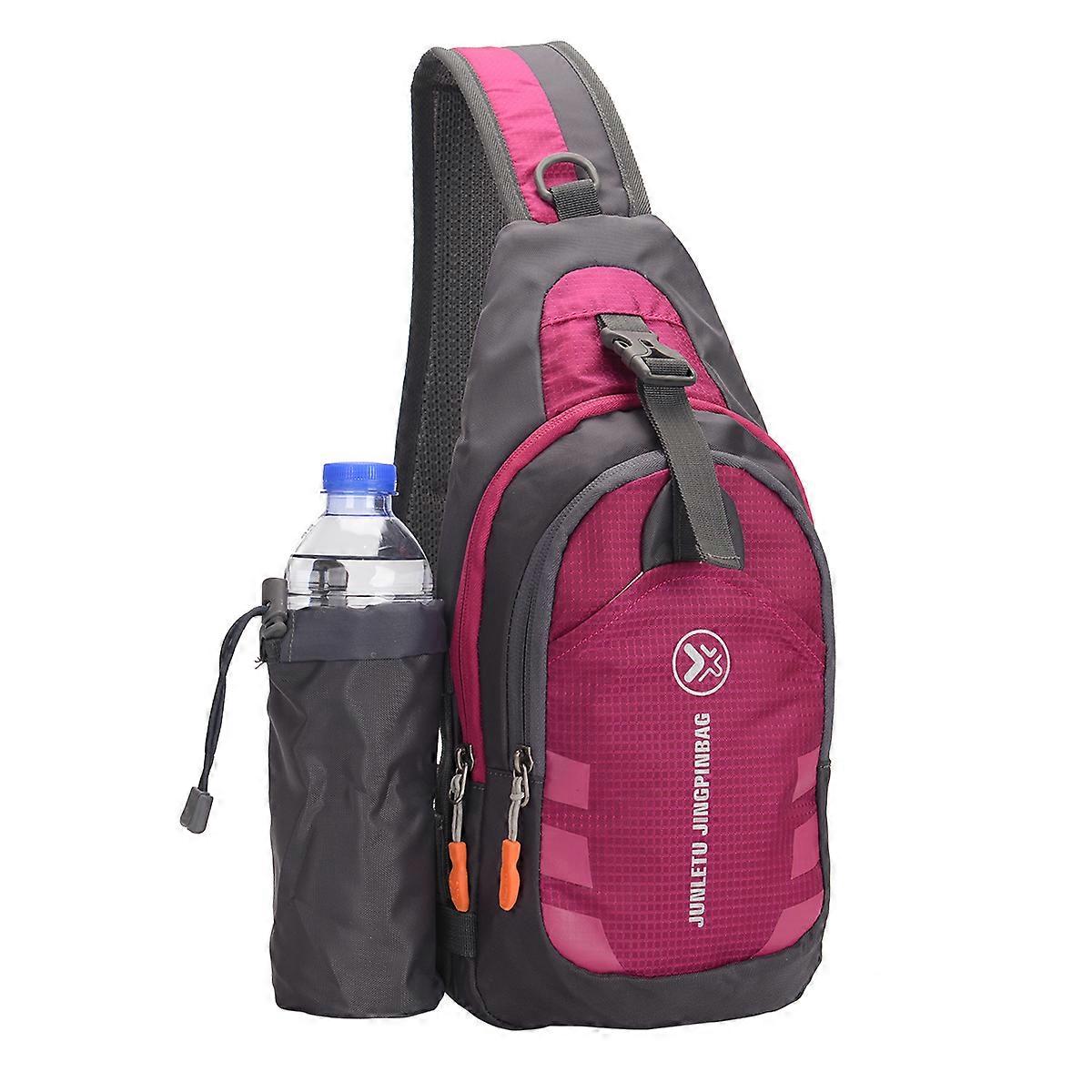 Sling Backpack Wear Resistant Waterproof Shoulder Chest Pack Crossbody Bag with Detachable Water Bottle Holder Pouch for Hiking Travel (Rose Red)