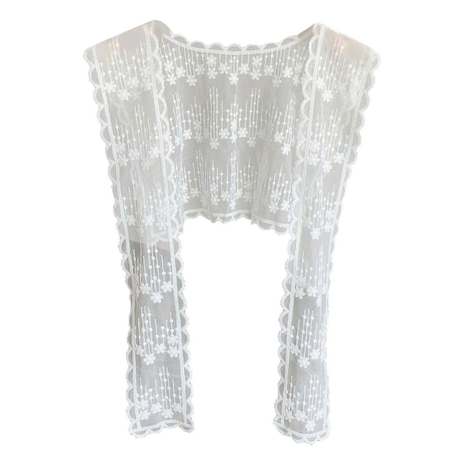 Women's Fashion Flower Lace Shawl Wrap Scarf Tie Knot Front Shoulder Covering Capelet Faux Collar Scarves Waist Belt