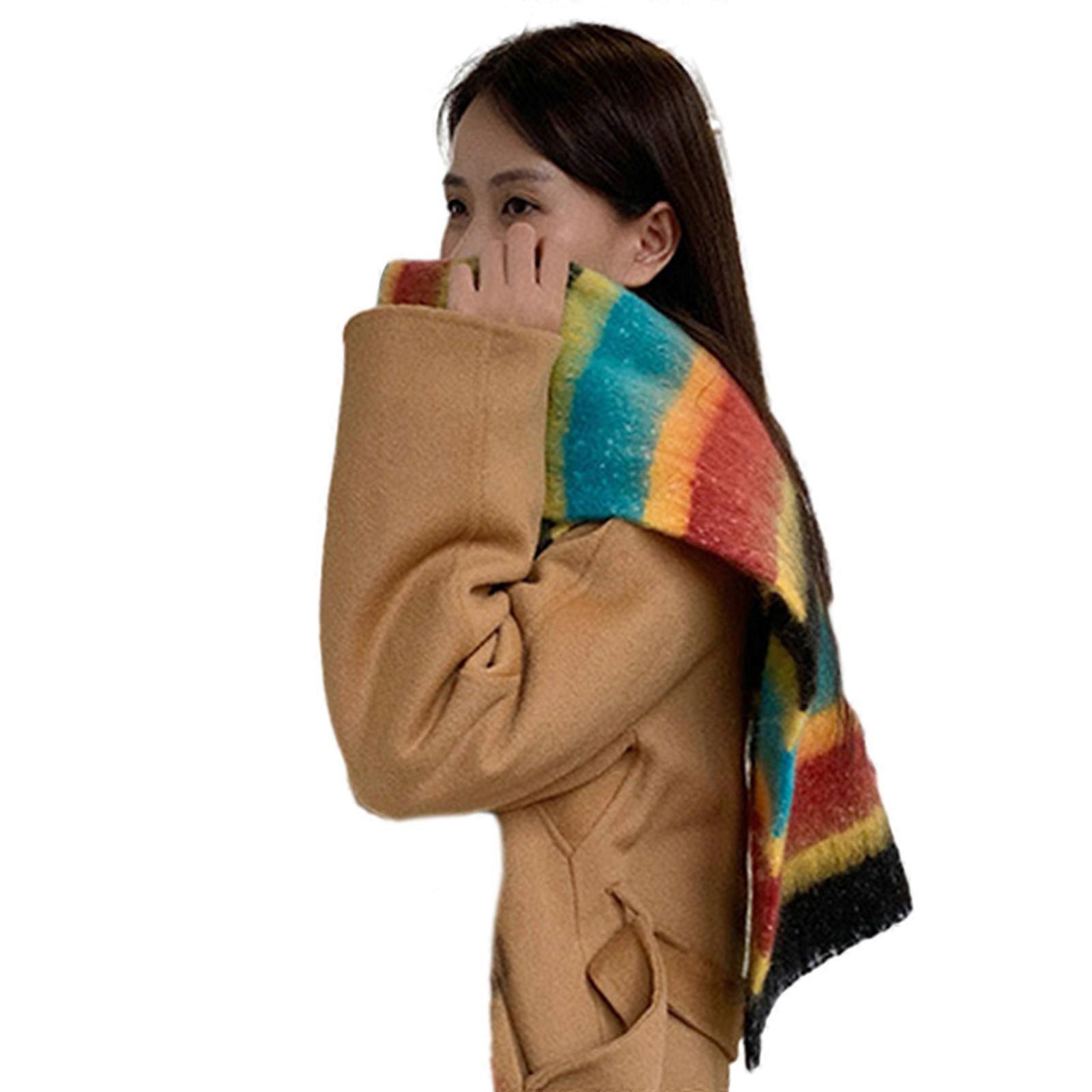 Fashion Fringed Rainbow Scarf Female Bright Color Scarf Cashmere Like Scarf Pilling Resistant Cold Weather Neck Shawl wine red black
