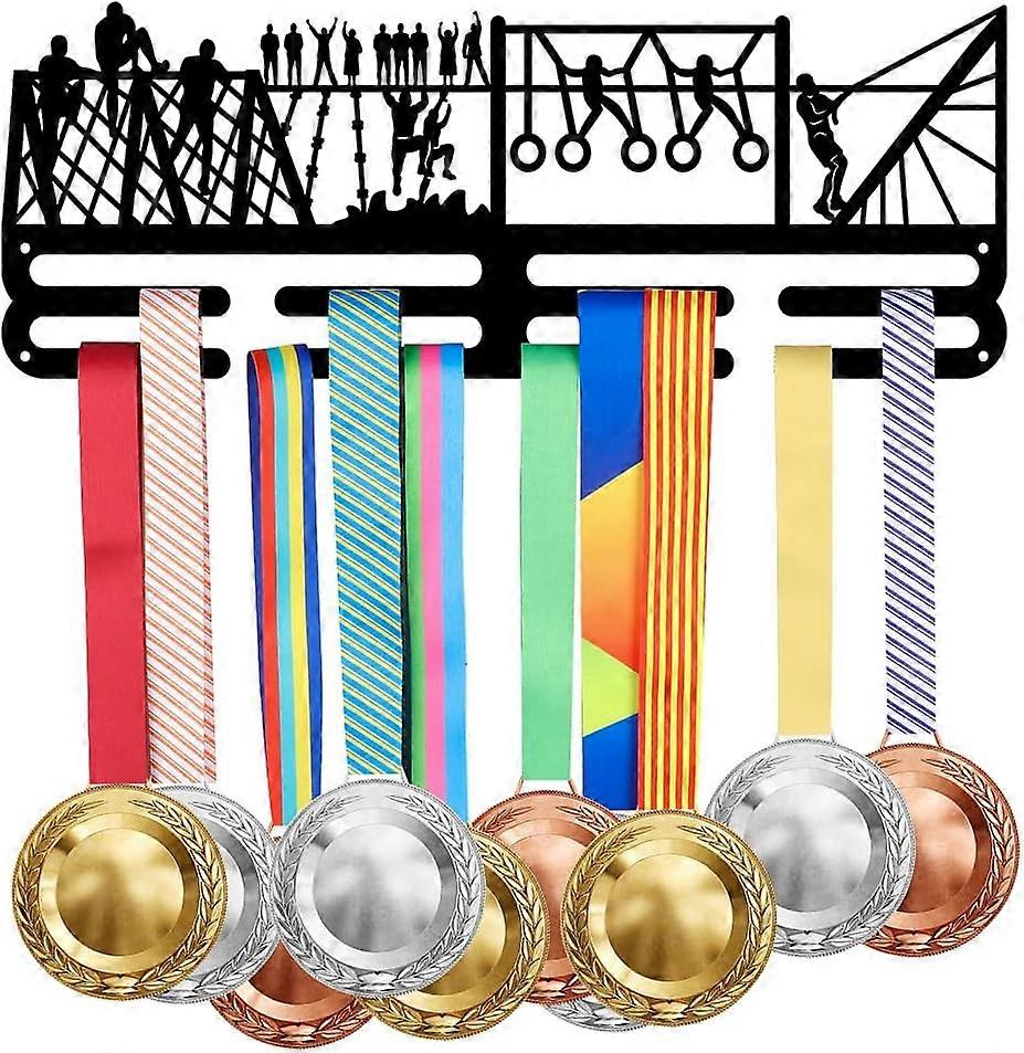 Fashion Iron Medal Hanger Holder Display Wall Rack 2 Line with Screws Sportsman Electrophoresis Black 150x400mm