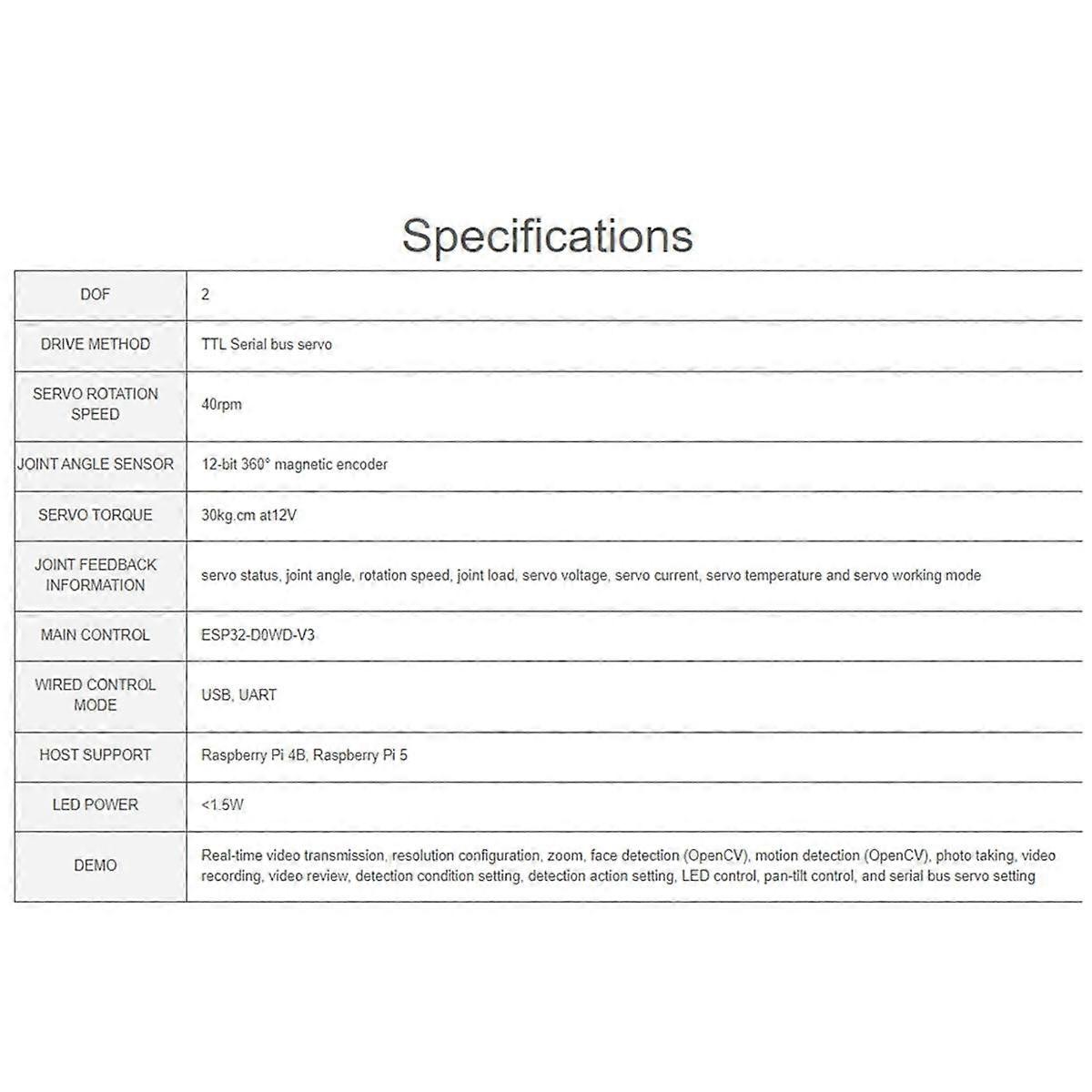 360 Omnidirectional High-Torque 2-Axis Expandable Pan-Tilt Camera Module, Driven By Serial Bus Servos EU Plug