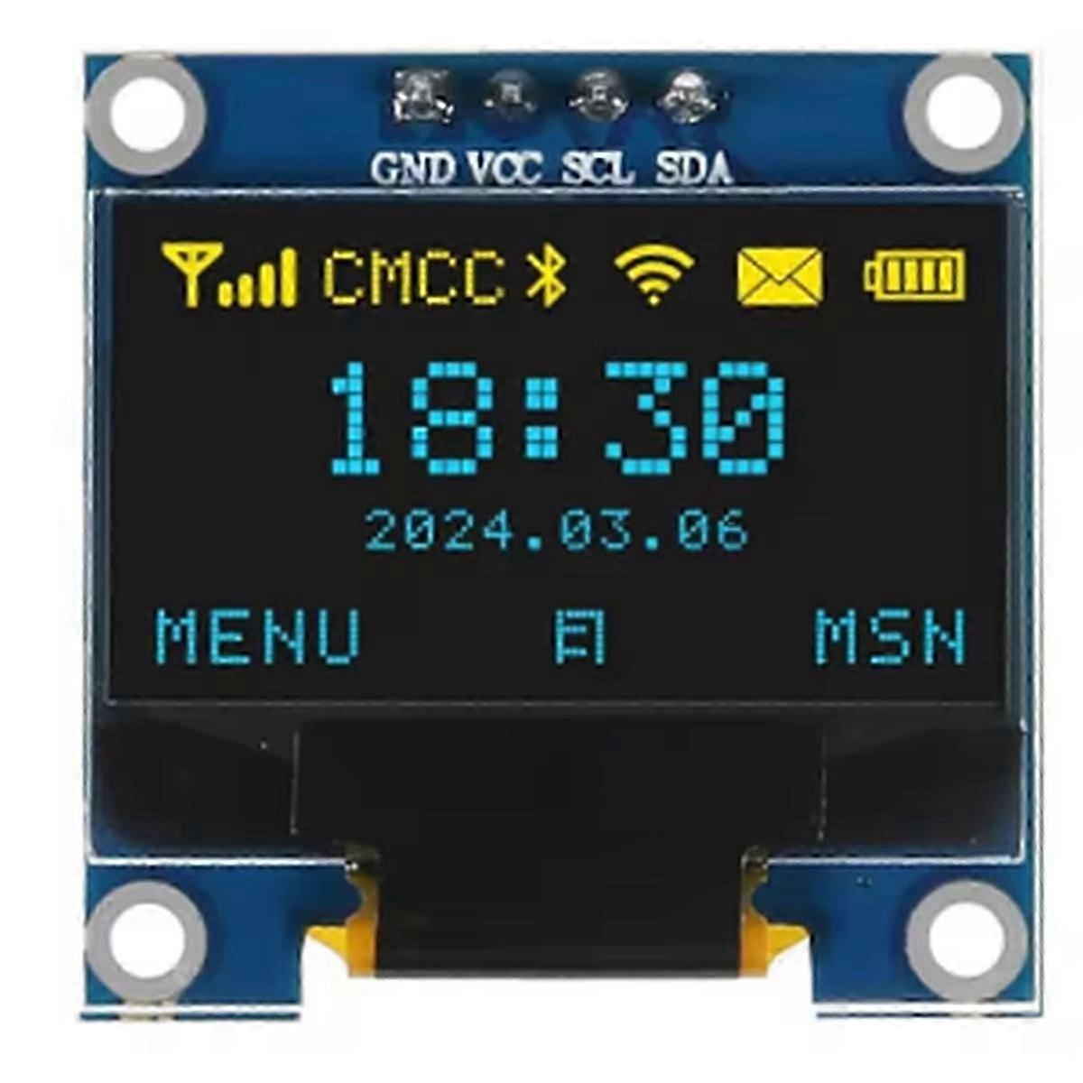 0.96 Inch OLED Display Screen Module I2C IIC 128x64 SSD-1306 LCD Screen 3.3V-5V Blue Yellow compatible with ESP3