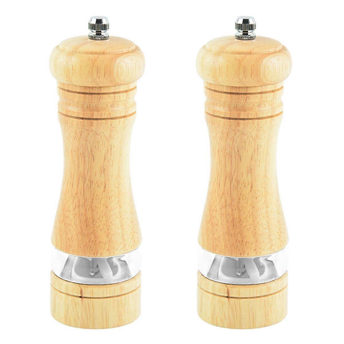 Pepper Mill, Wooden Salt and Pepper Mill Set, Classic Manual Salt Mill, Refillable Pepper Mill Set with Acrylic Viewing Window