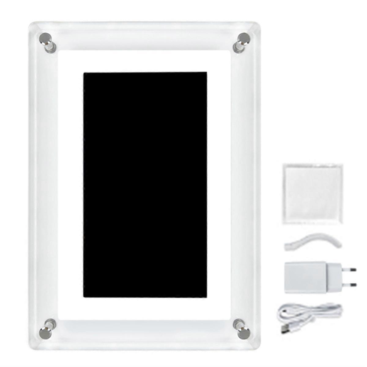 Smooth corner design effectively prevents scratches, scratches, and collisions 360 ° automatic rotation playback function supports free switching of horizontal and vertical files Display Your Memories: Showcase your cherished photos with our Acrylic Digital Photo Frame featuring a high-resolution 5 inch IPS display for crystal clear visibility and vibrant colors. Perfect for home or office desks, it enhances any decor. Built-in Battery: Powered by a 1200mAh battery, this digital frame ensures you can enjoy your photos continuously without the need for constant recharging. Ample Storage: With a generous 4G built-in memory, store thousands of your and cycle through them seamlessly. Vertical Orientation: Designed for vertical display, this frame makes it easy to view full-length portraits or narratives, offering a and engaging way to display photos that tell a story. Resolution: 1080x1080 resolution Storage capacity: 4GB Battery capacity: 1200mAh Due to different batches, there may be differences in product appearance and printed text, which not affect use Colour:White Material:Acrylic Plug Type :EU Plug,it applies to Indonesia, Germany, France, Spain, Italy and so on. Voltage: AC 220V Package Contents: 1 x Digital photo frame 1 x Rear bracket 1 x Dust proof cloth 1 adapter 1 x 100cm USB data cable Only the above package content, other products are not included. Note: Light reflection and different displays may cause the color of the item in the picture a little different from the real thing. The measurement allowed error is +/- 1-3cm.