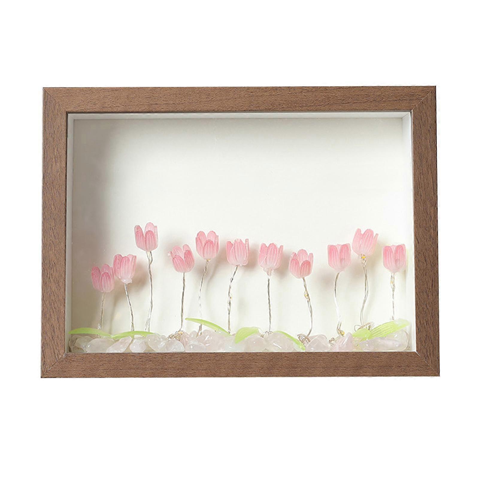 Wooden Frames Easily Install Sturdy DIY Picture Frame with Night Light 6inch Pink Flower Brown