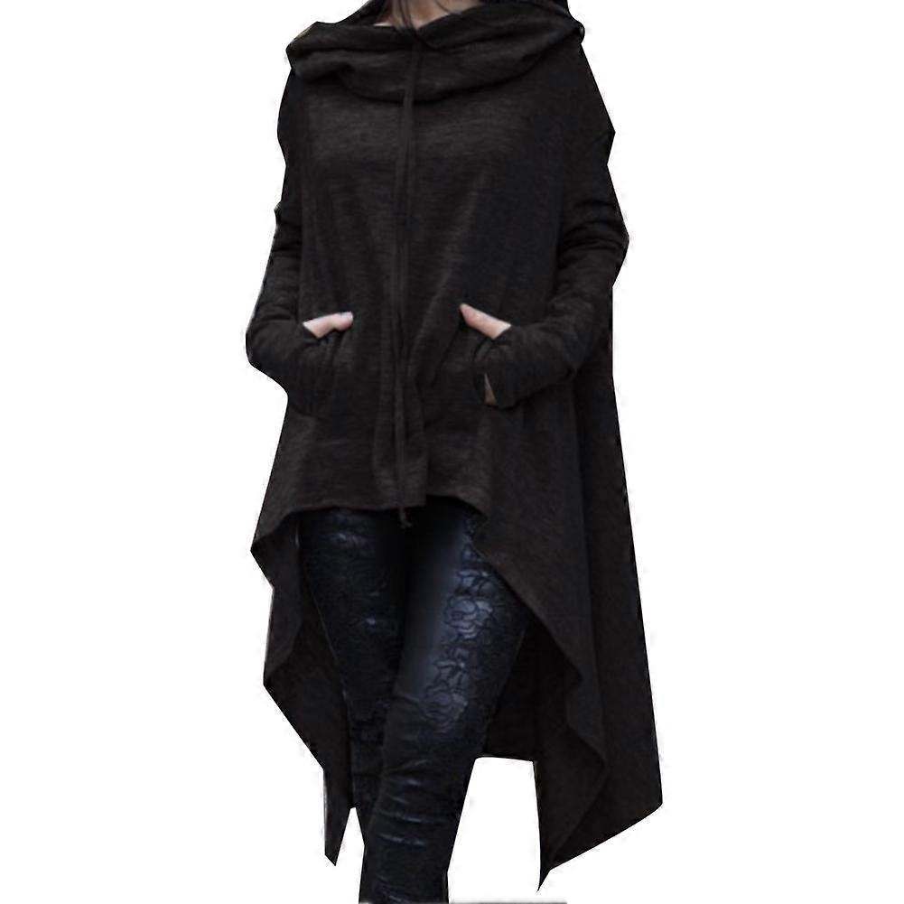 Women Hem Sweatshirt Poncho Hooded Asymmetric Coat Solid Loose