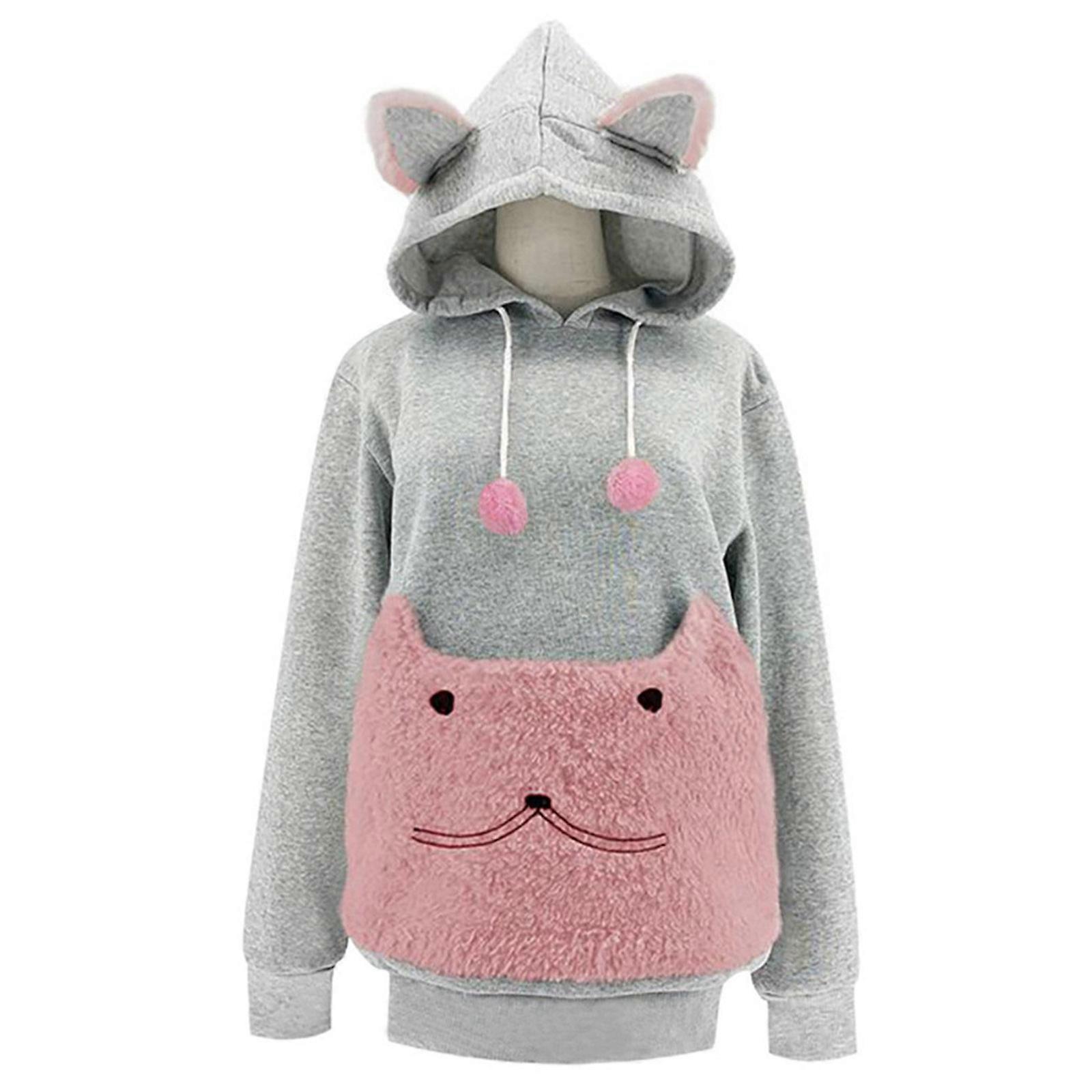 Fashionable Embroidered Hoodie with Large Pocket Long Sleeve Pullover Tops for Women Pink XL