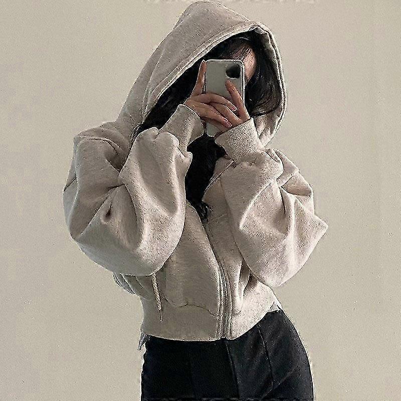6 Colors Solid Zip Up Drawstring Hoodie, Casual Long Sleeve Sweatshirt With Pocket, Women's Clothing