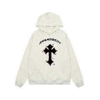 High Street Retro Cross Print Hooded Sweatshirt Men's Loose Hip-Hop Letter Jacket