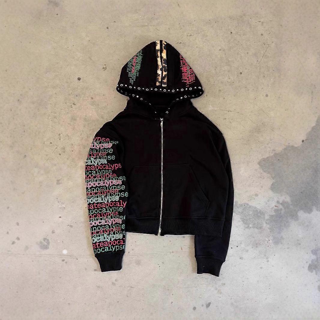 Retro Artistic Style Hoodie Jacket Letter Print Sweatshirt