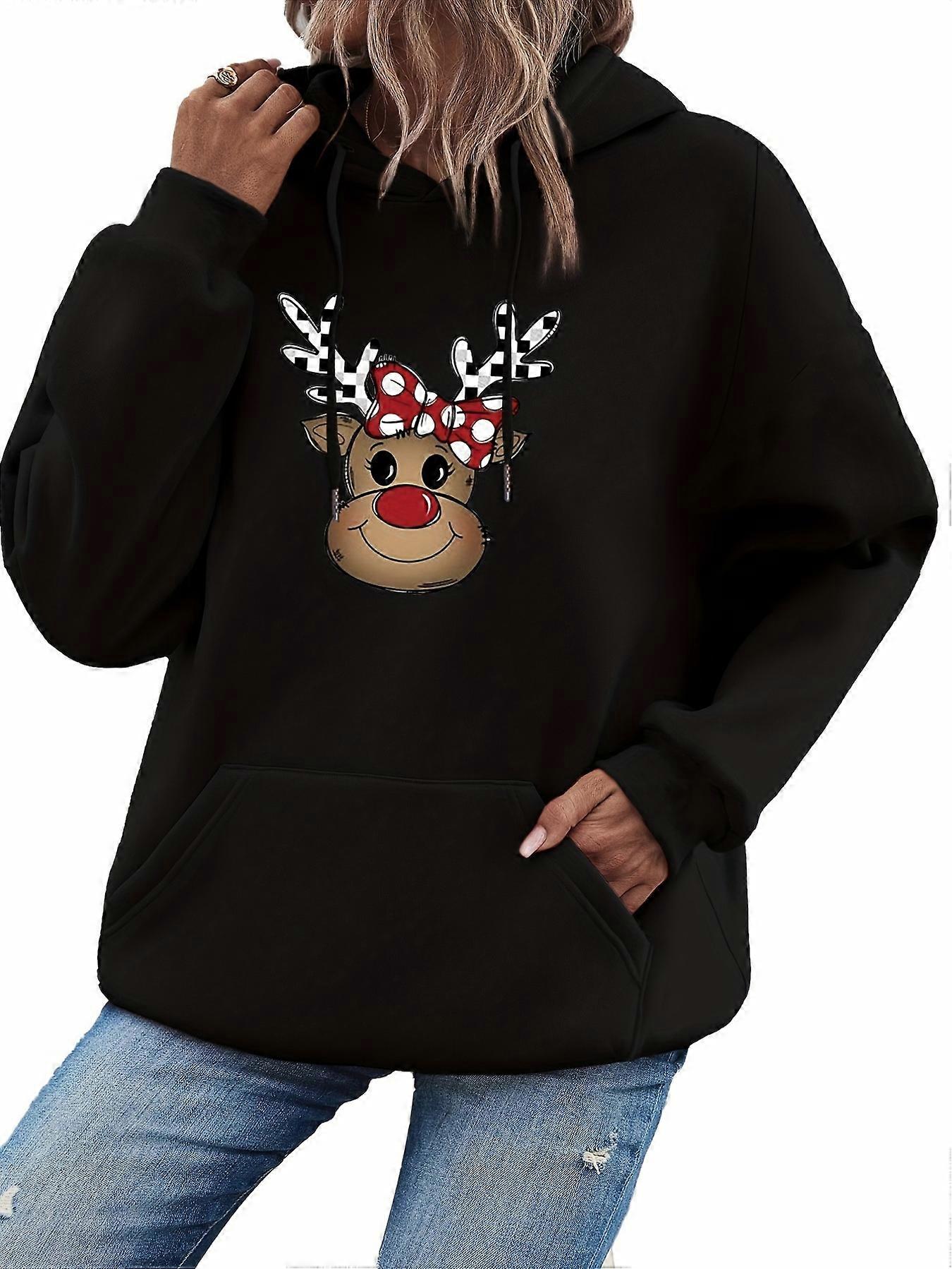 Christmas Reindeer Print Drawstring Hoodie, Casual Long Sleeve Kangaroo Pocket Hoodie Sweatshirt