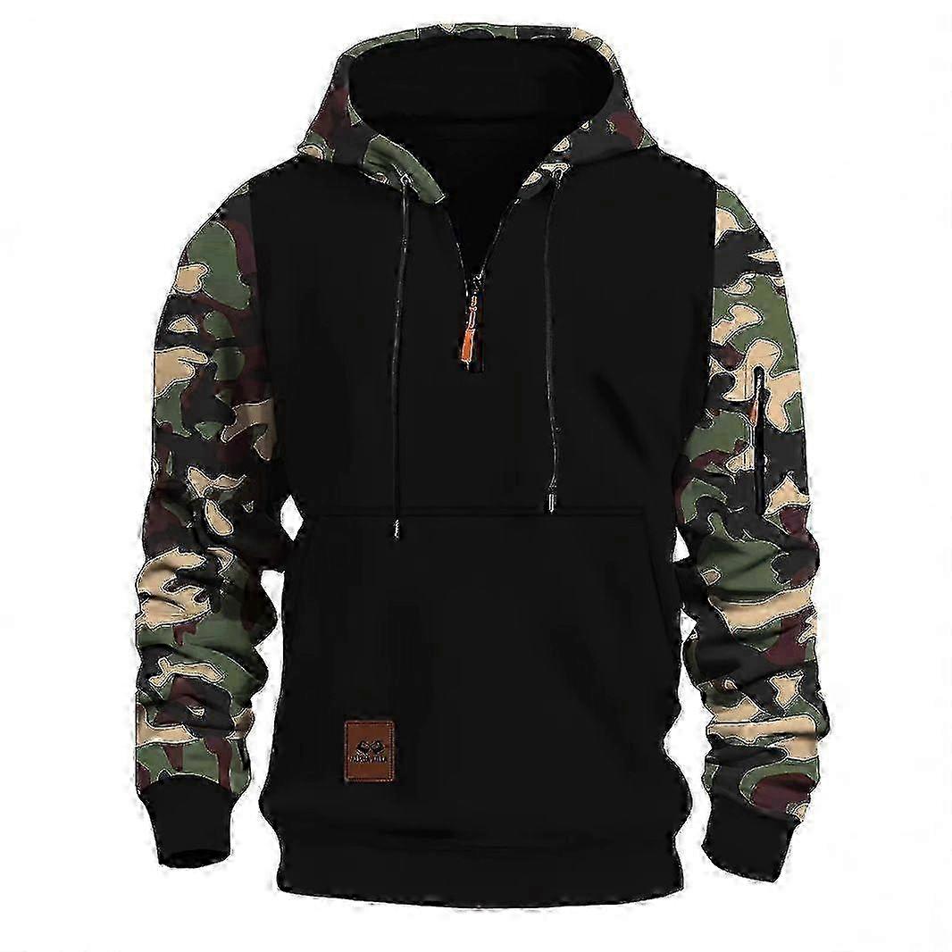 Men's Camo Patchwork Hooded Zip Up Sweatshirt Retro