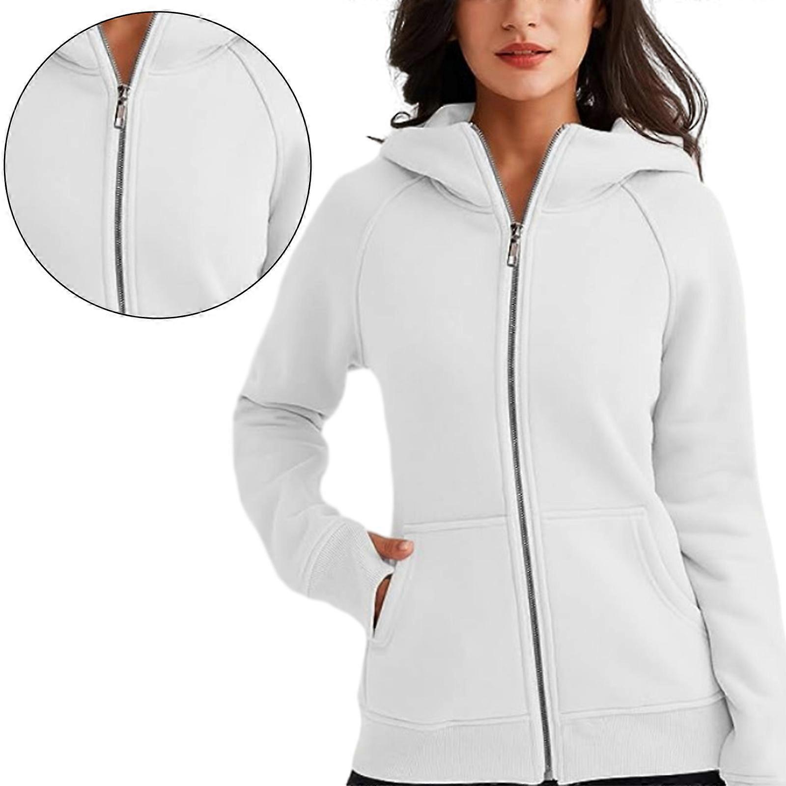 Women Fleece Lined Full Zip Up Hoodie Sweatshirt Casual Fall Outfits Long Sleeve Hooded Jackets Top with Thumb Hole White XL