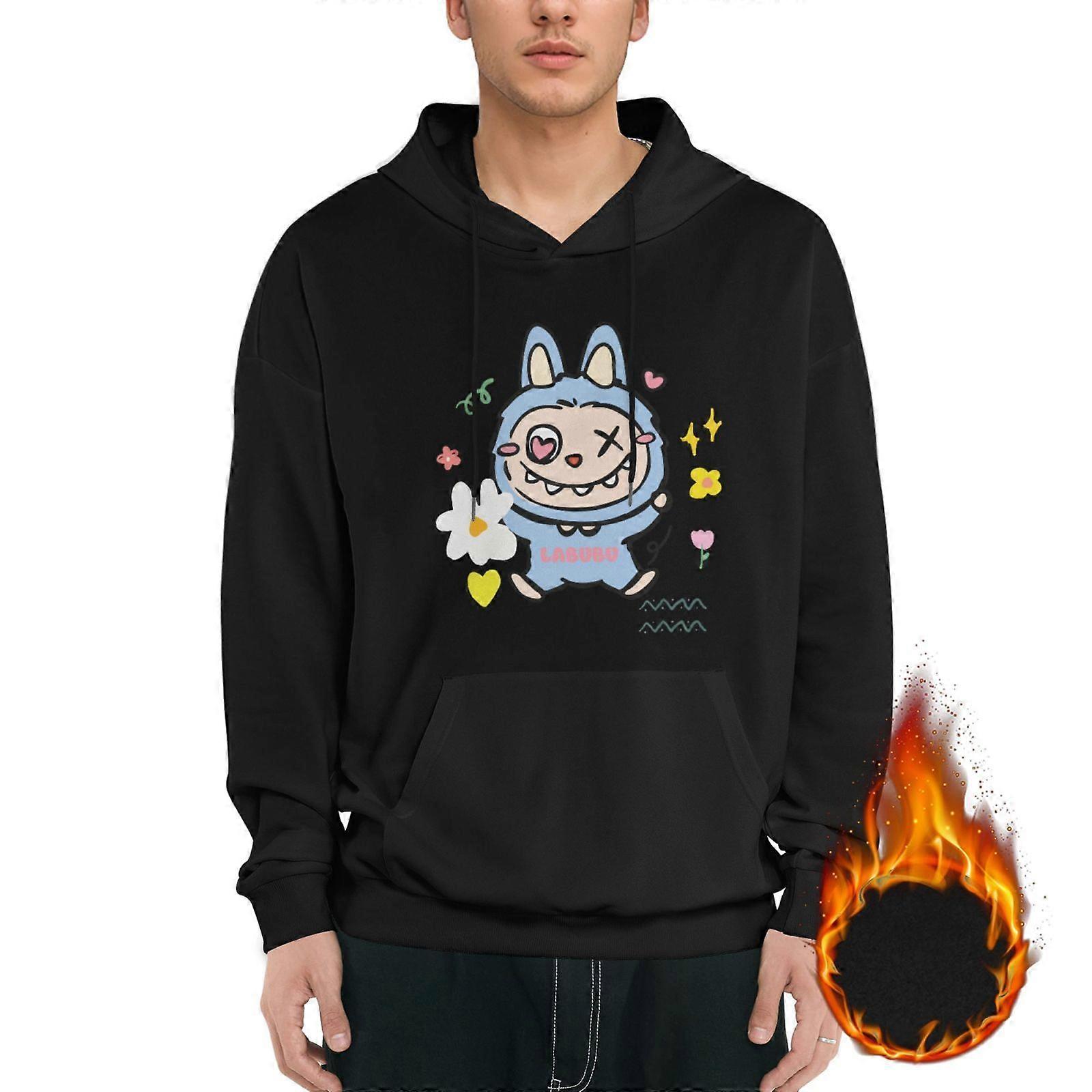 Labubu in Blue Onesie with Wink and Flowers Print Men's Hoodie