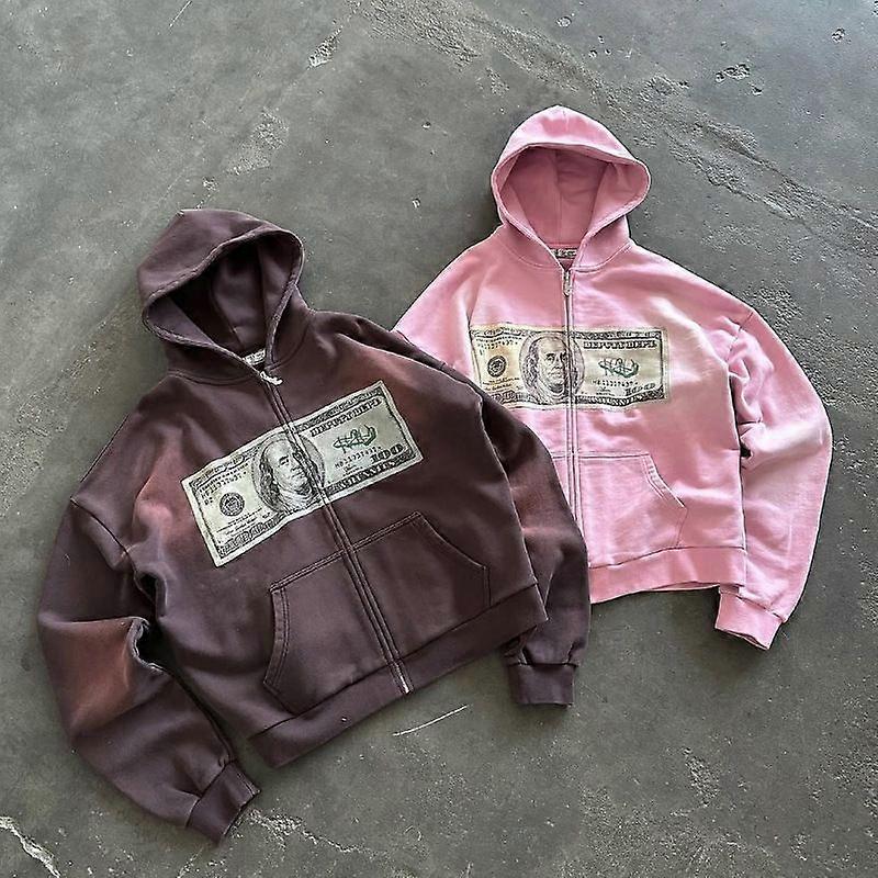 Y2K Men's Retro Sweatshirt Harajuku Dollar 3D Print Zip Up Hoodie